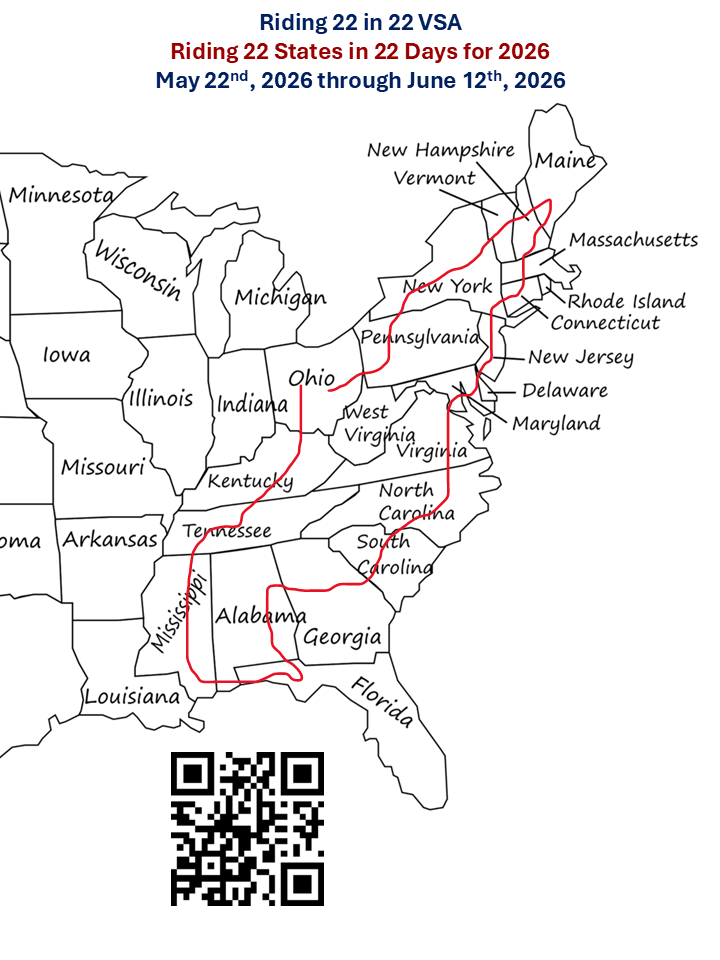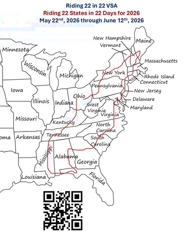 Information for our 22 States in 22 Days ride for 2026 is below: