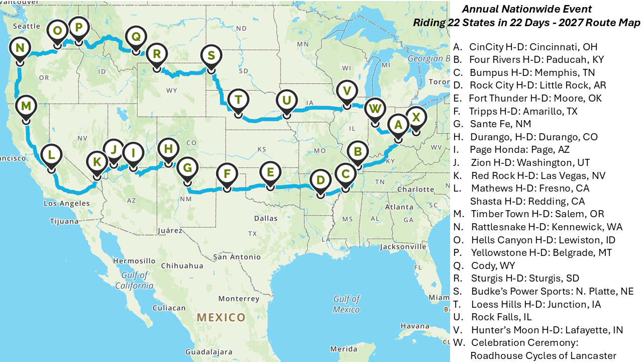 Information for our 22 States in 22 Days ride for 2027 is below, More Details to Come!