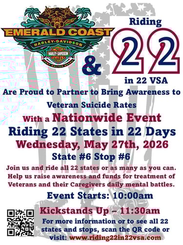 In 2025, Riding 22 in 22 set out on our “22 States in 22 Days” ride, a journey that is about so much more than the miles covered. Along the route, we engaged with communities, listened to the stories of veterans, and stood alongside families who have endured the heartbreaking loss of a loved one to suicide. Every stop was a reminder of why we ride to raise awareness, to honor the struggles and sacrifices of our heroes, and to shine a light of hope where it’s needed most.