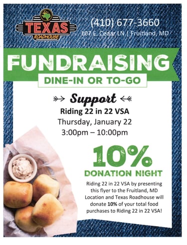 There is no additional cost to you! Enjoy a delicious meal and help a veteran at the same time!