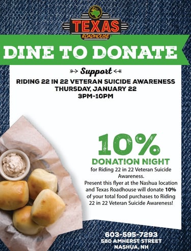 Just show the image of this flyer to your server on your mobile device before paying your bill and they will donate the percentage noted of your bill to help us provide transportation, lodging and meals to veterans and their caregivers while they attend lifesaving mental health treatment.
