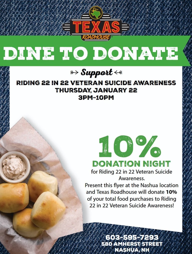There is no additional cost to you! Enjoy a delicious meal and help a veteran at the same time!