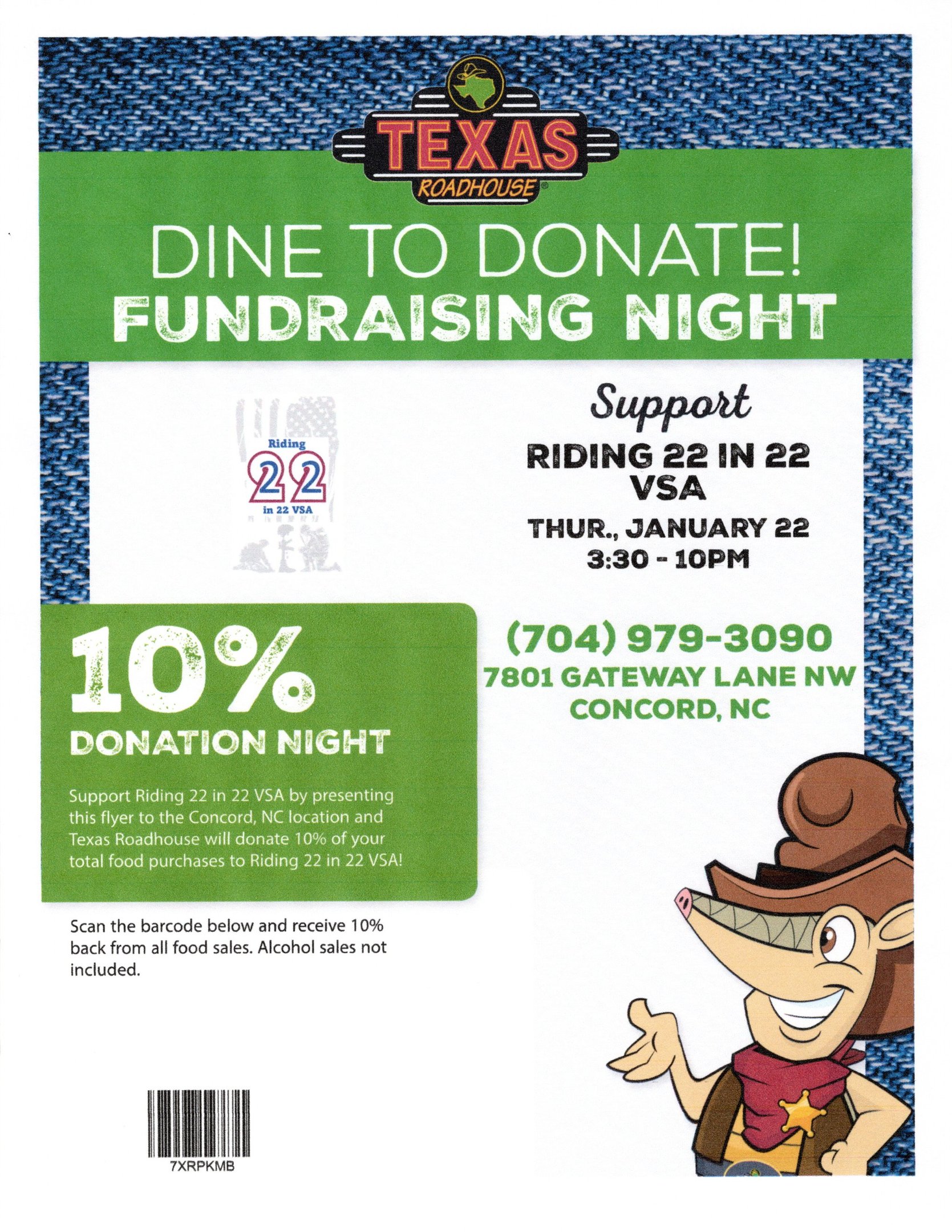 There is no additional cost to you! Enjoy a delicious meal and help a veteran at the same time!