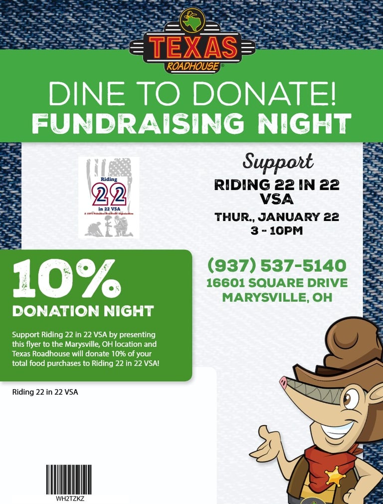 There is no additional cost to you! Enjoy a delicious meal and help a veteran at the same time!