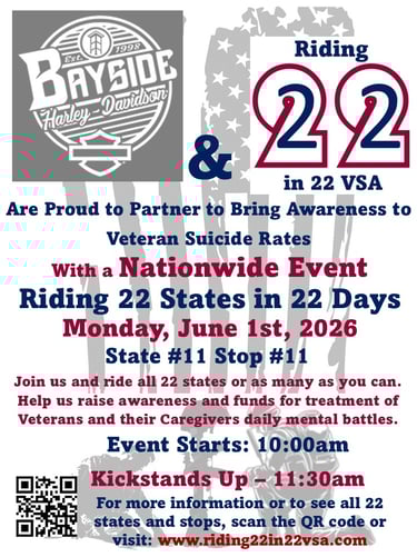 In 2025, Riding 22 in 22 set out on our “22 States in 22 Days” ride, a journey that is about so much more than the miles covered. Along the route, we engaged with communities, listened to the stories of veterans, and stood alongside families who have endured the heartbreaking loss of a loved one to suicide. Every stop was a reminder of why we ride to raise awareness, to honor the struggles and sacrifices of our heroes, and to shine a light of hope where it’s needed most.