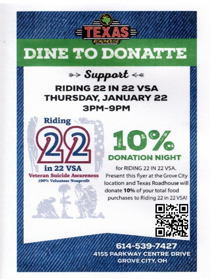 There is no additional cost to you! Enjoy a delicious meal and help a veteran at the same time!